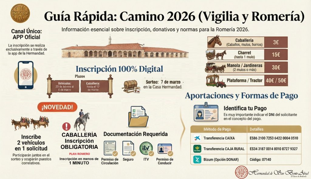 Por la presente, la Hermandad de San Benito Abad de El Cerro de Andévalo hace pública la apertura del proceso de inscripción y registro digital para la participación en la comitiva oficial del Camino de Peregrinación al Santuario para la Vigiliade San Benito.